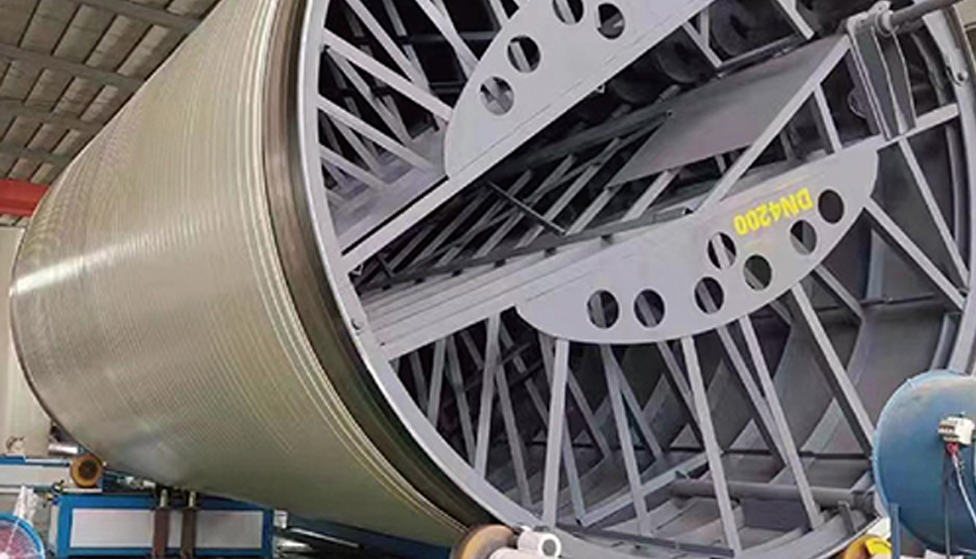 PPH纏繞管要以β晶體結(jié)構(gòu)改性聚丙烯(Polypropylene Homopolymer)為主要原料,根據(jù)數(shù)控機(jī)床盤繞工藝制成的多層復(fù)合管材。其高分子鏈經(jīng)定向調(diào)控產(chǎn)生六方晶系構(gòu)造,抗拉強(qiáng)度可以達(dá)到32MPa,下面介紹一下PPH纏繞管的抗變形水平。一、構(gòu)造抗變形體制雙層盤繞設(shè)計方案選用交叉式盤繞加工工